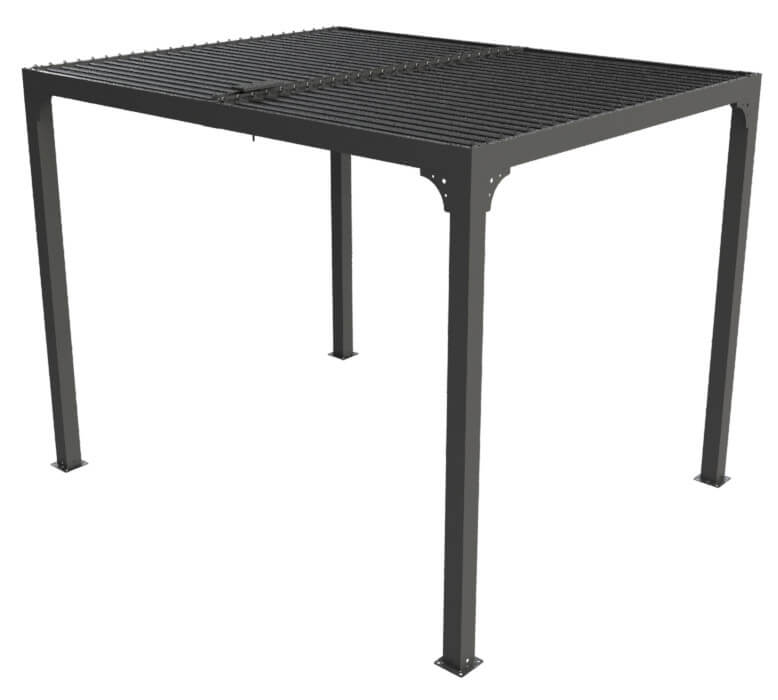 - Revêtement : panneaux aluminium 90 mm, épaisseur 1 mm, coloris gris anthracite, orientable jusqu'à 90°