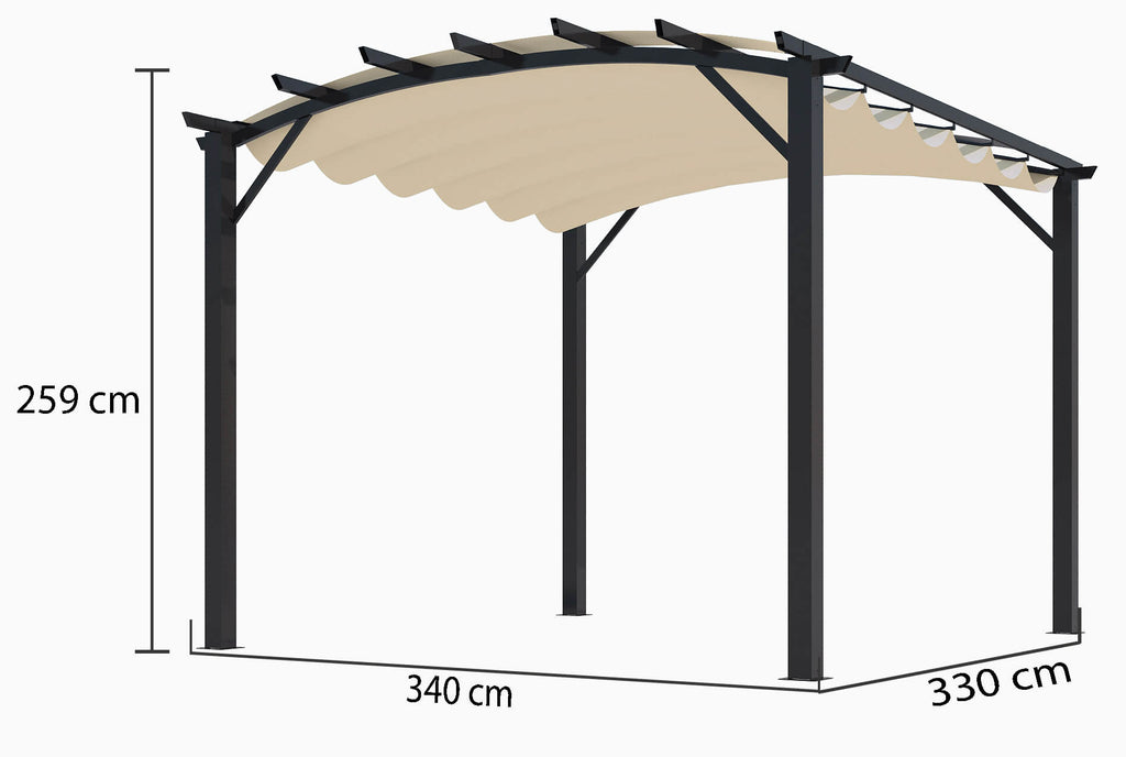 Pergola de jardin 3,4x3,3x2,4 m en aluminium avec bâche 140g/m2 Ecru