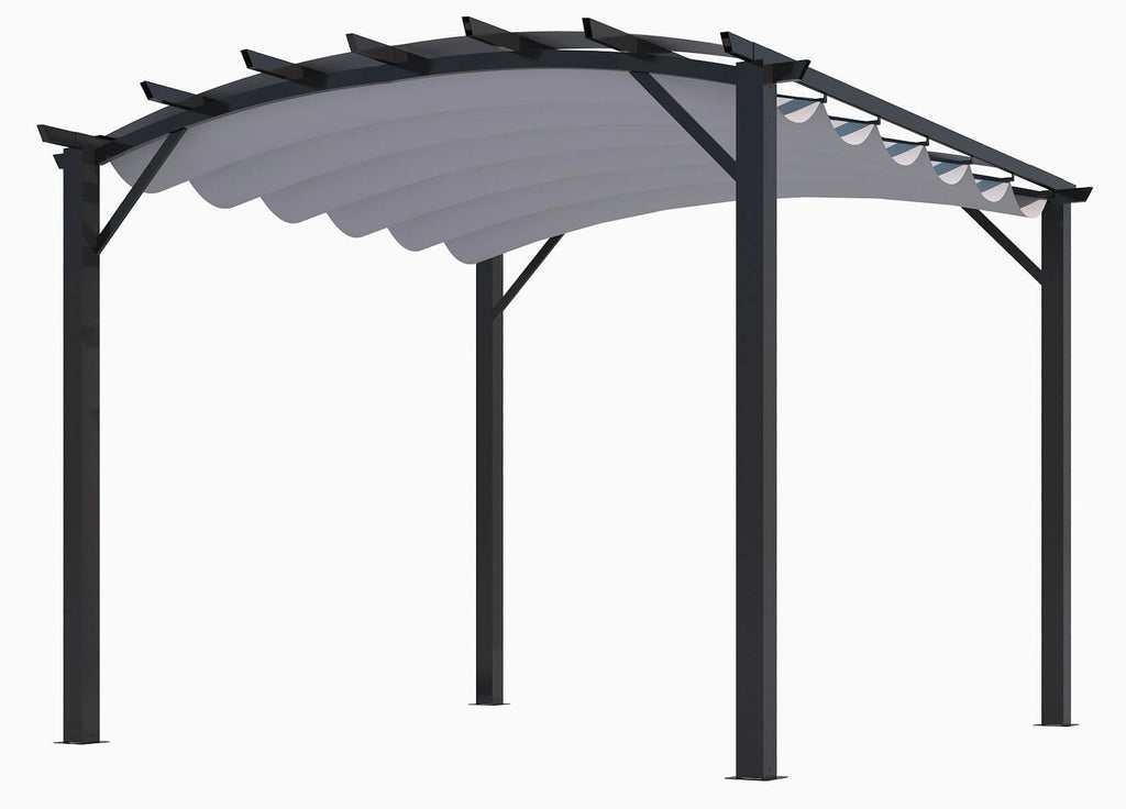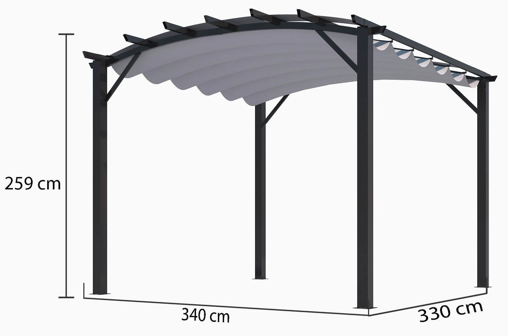 Pergola de jardin 3,4x3,3x2,4 m en aluminium avec bâche 280g/m2 gris