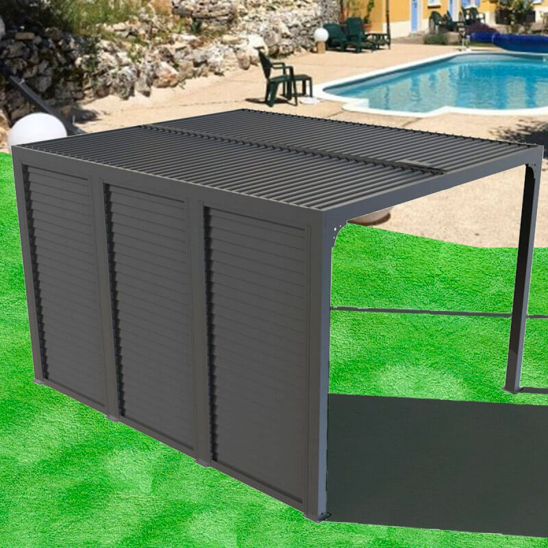 Conçu pour offrir aux personnes un espace de détente optimisé pour se protéger du soleil d'été, offrant la possibilité de laisser pénétrer la lumière et la chaleur pendant les mois d'hiver. Pour optimiser votre confort, cette pergola bioclimatique est équipée d'un jeu de 3 panneaux latéraux à lattes amovibles pour un des côtés de 3,60 m. Une fois en position, le jeu des lattes latérales vous offrira un confort supplémentaire en vous protégeant des courants d'air, des rayons de soleil insistants ou de la vue de tout vis-à-vis. Equipé d'un mécanisme d'ouverture individuel par panneau, vous pouvez régler librement le degré de dissimulation selon vos besoins. Son système d'ouverture latérale, fixé sur des montants opposés, résistera aux variations des courants d'air. Simple à installer, il vous apportera le calme et la tranquillité que vous recherchez.