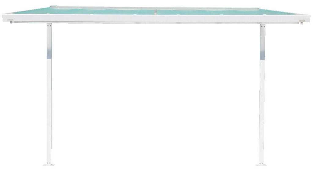 Auvent Pergola Outdoor en polycarbonate résistant aux UV avec structure en aluminium blanc à fixer au sol.