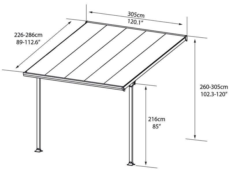 Caractéristiques techniques Pergola de jardin en aluminium Onduline Emilia
