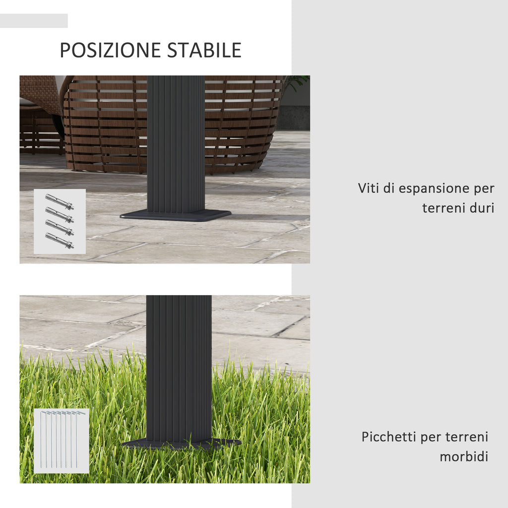 - Sono inclusi picchetti e viti a espansione per il fissaggio al suolo