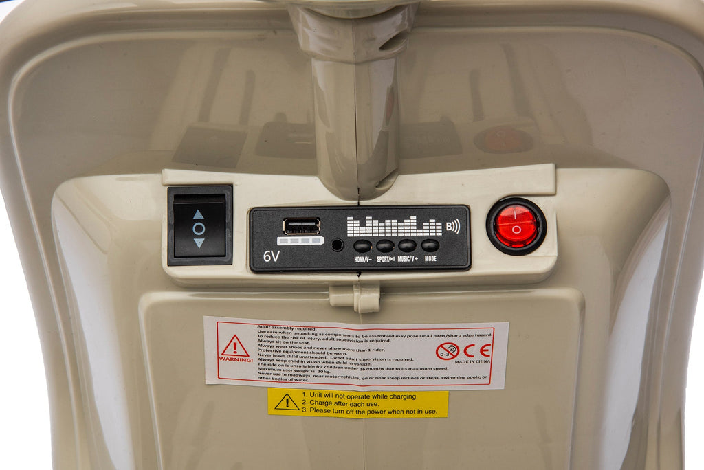 Piaggio Vespa avec Sidecar Petit Électrique 6V pour Enfants Crème