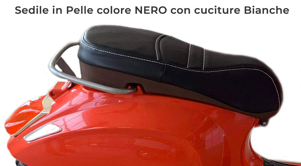 - Siège en cuir noir avec coutures blanches
