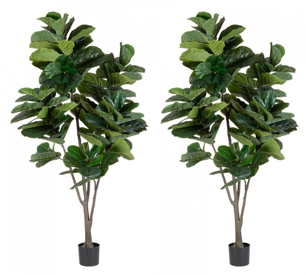 Set 2 Piante Artificiali di Ficus Ø120x230 cm in Plastica con Vasi Verde