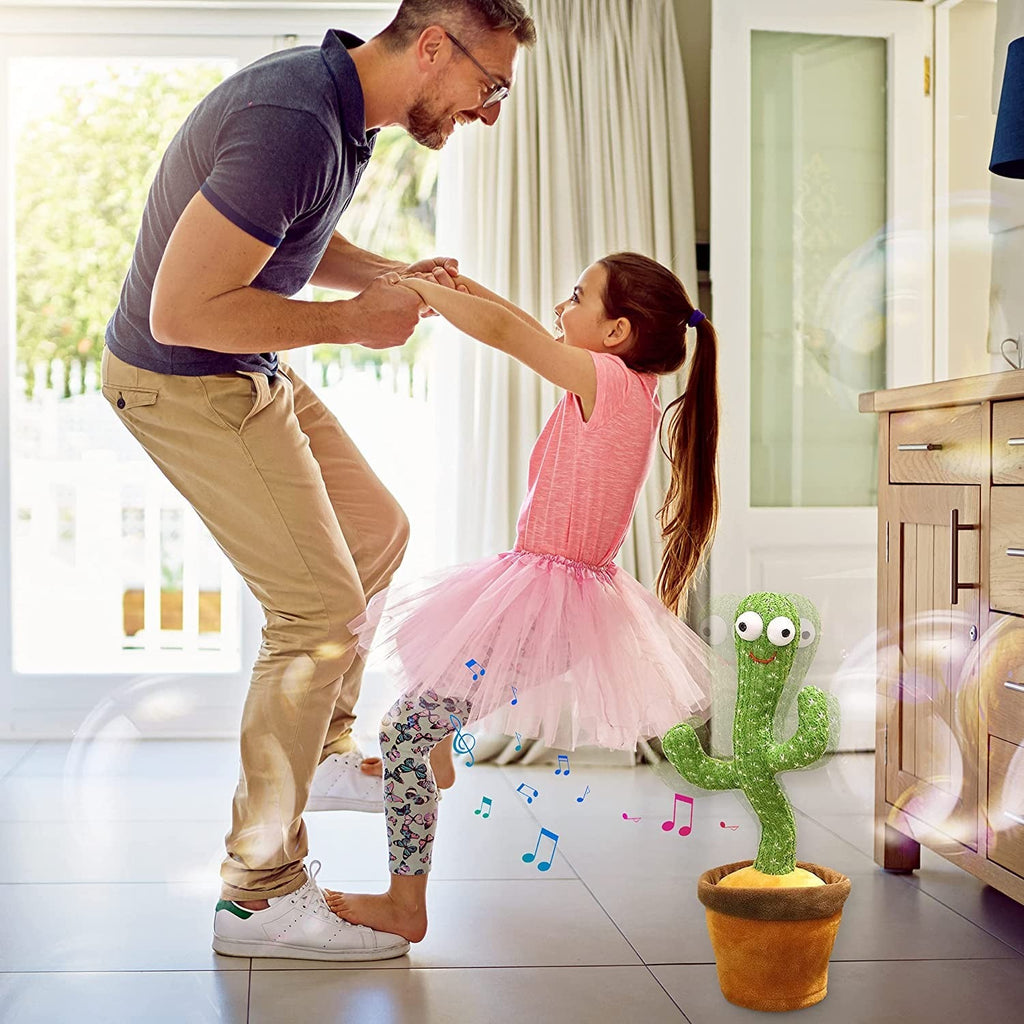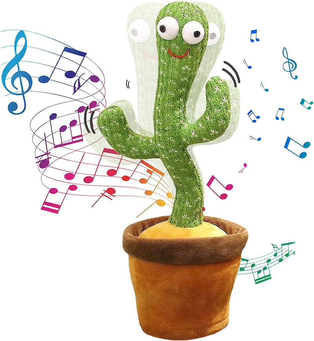 Cette très jolie peluche, adorée des adultes comme des enfants, répète tout ce que vous dites et en même temps danse en rythme. Alternativement, vous pouvez le faire danser au rythme des différentes chansons préenregistrées. C'est un très bel accessoire décoratif à insérer dans n'importe quel environnement et un excellent stimulant éducatif pour les enfants qui commencent à parler. En appuyant sur le bouton gauche, le cactus enregistrera vos mots et les répétera, si vous appuyez sur le bouton droit à la place, il jouera la musique préenregistrée.