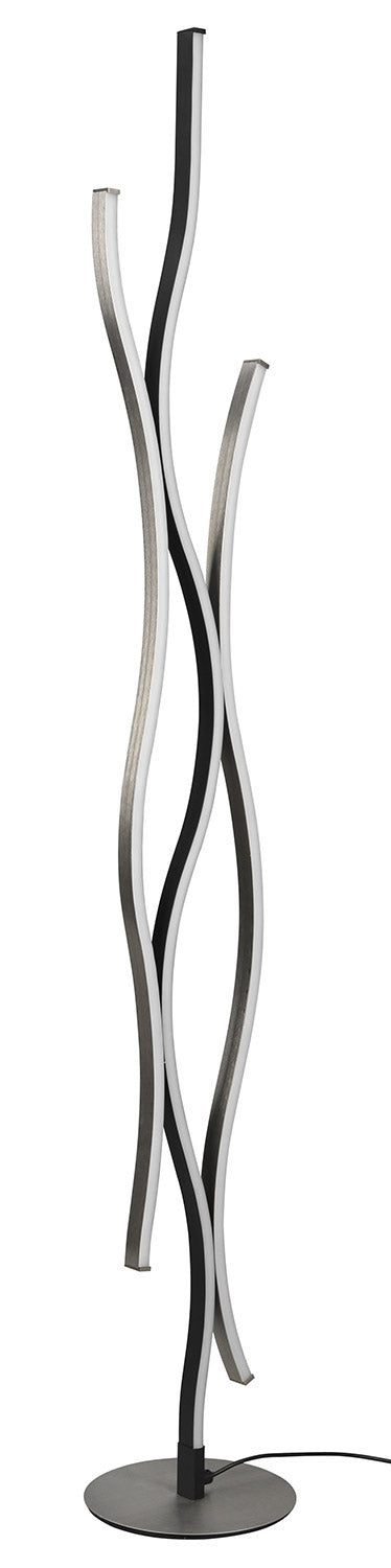 Blaze Piantana Led Ondulata Metallo Alluminio e Nero con Regolazione Intensità e Temperatura di Colore Della Luce con Interruttore H. 138Cm