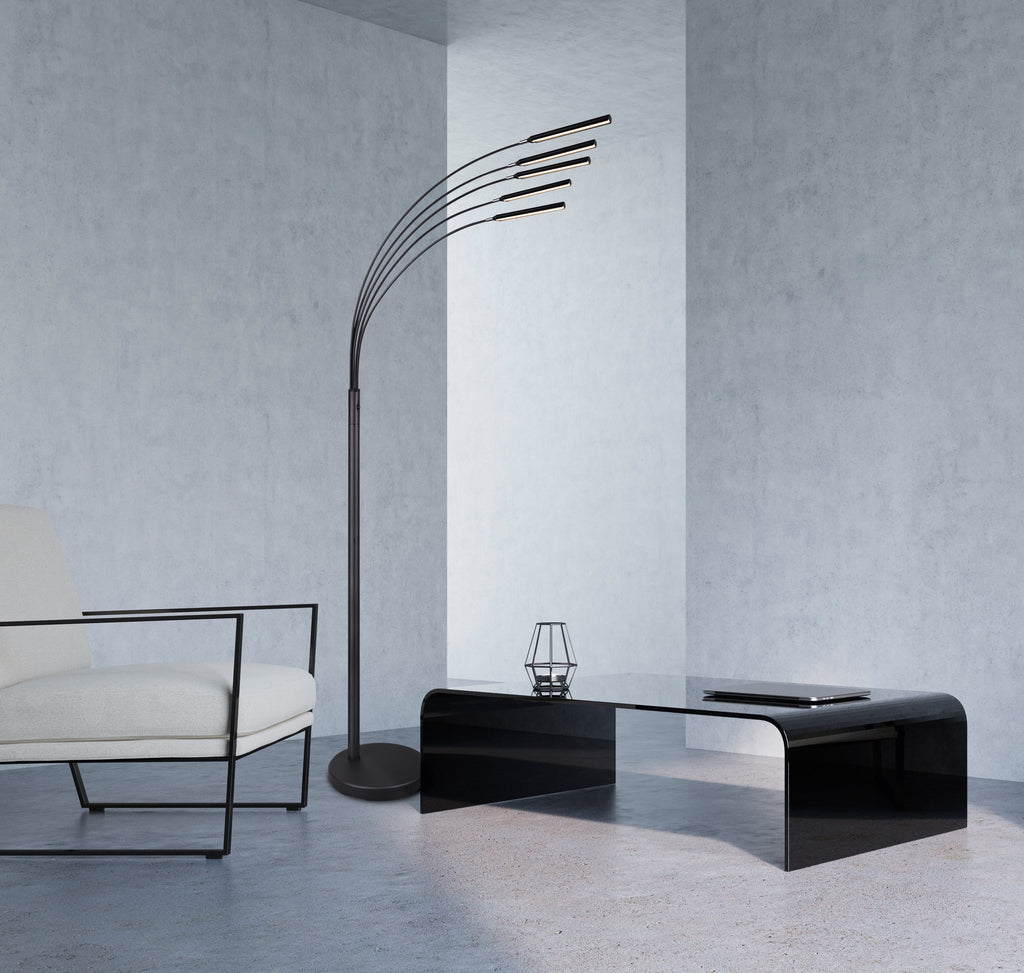 Lampadaire Reed Arqué Anthracite Led 5 Diffuseurs Réglables Et Intensité Lumineuse Réglable H. 180Cm