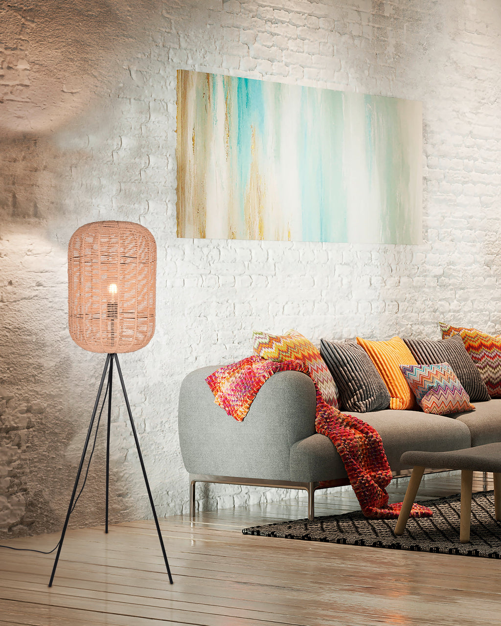 Runa Lampadaire Diffuseur Large Métal Noir Et Corde D.35Cm H. 150Cm