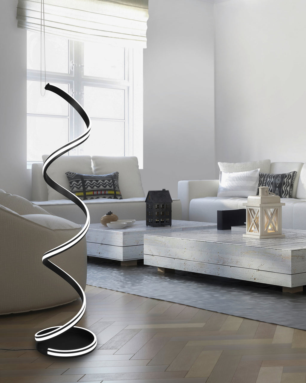 Lampadaire LED d'intérieur en Métal Noir Mat