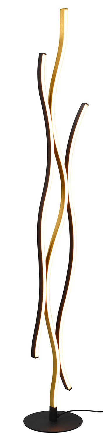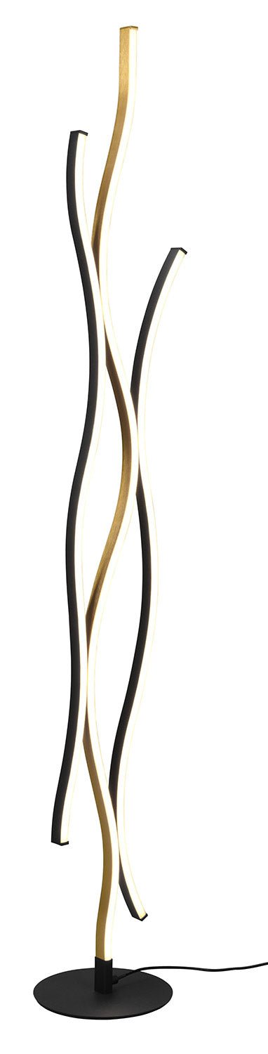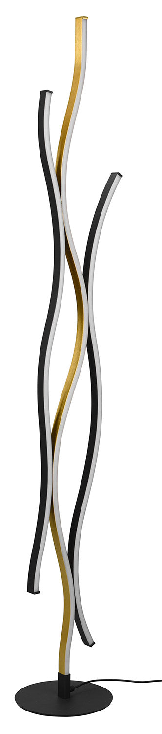 Blaze Piantana Led Ondulata Metallo Ottone e Nero con Regolazione Intensità e Temperatura di Colore Della Luce con Interruttore H. 138Cm