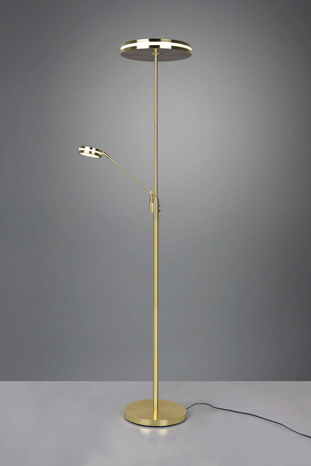 Franklin Piantana Led con Lampada Lettura Metallo Ottone Satinato con Regolazione Intensità Touch Dimmer + Regolazione Luce Calda, Naturale e Fredda e Funzione Memorizzazione H. 180Cm