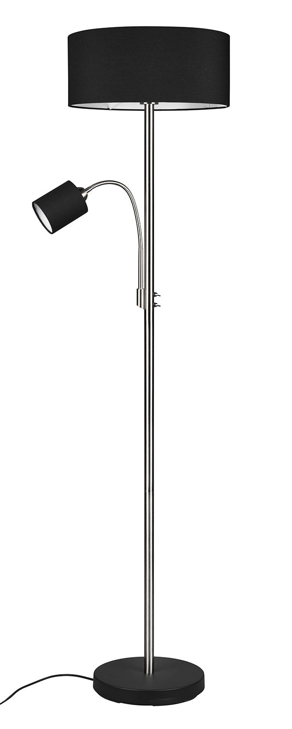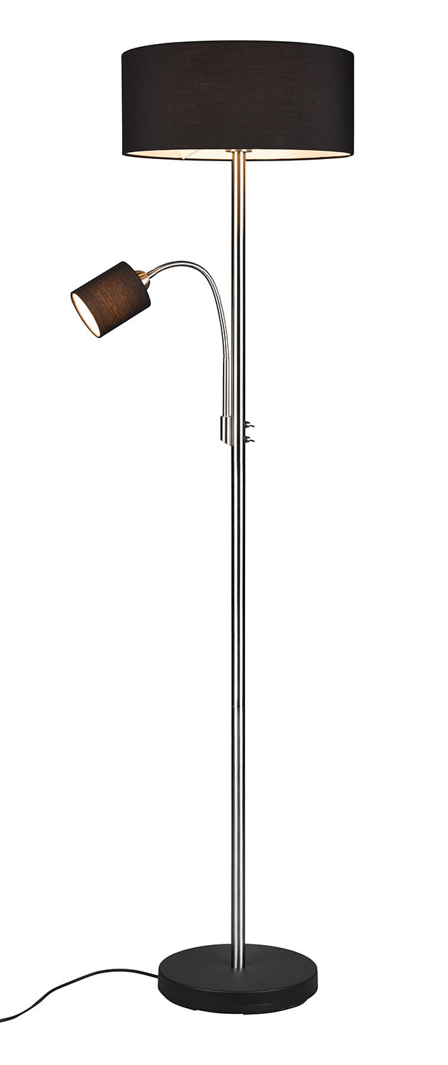 Motel Piantana Metallo Acciaio con Lampada Da Lettura con Paralumi Neri e Bianchi Interruttori Separati H. 170Cm