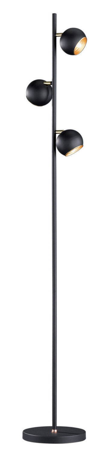 Dakota Piantana Metallo Nero e Oro con 3 Diffusori Orientabili Com Dimmer Integrato H. 155Cm