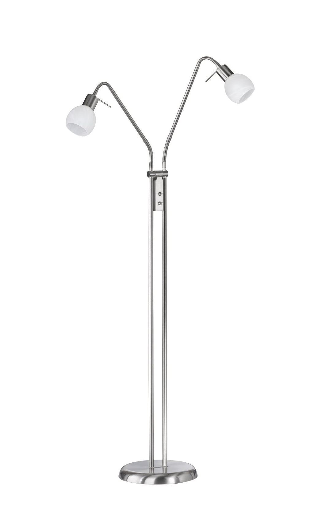 Antibes Lampadaire Métal Acier Satiné Avec 2 Diffuseurs Flexibles Verre Alabrastro Avec Interrupteur Séparé H. 125Cm