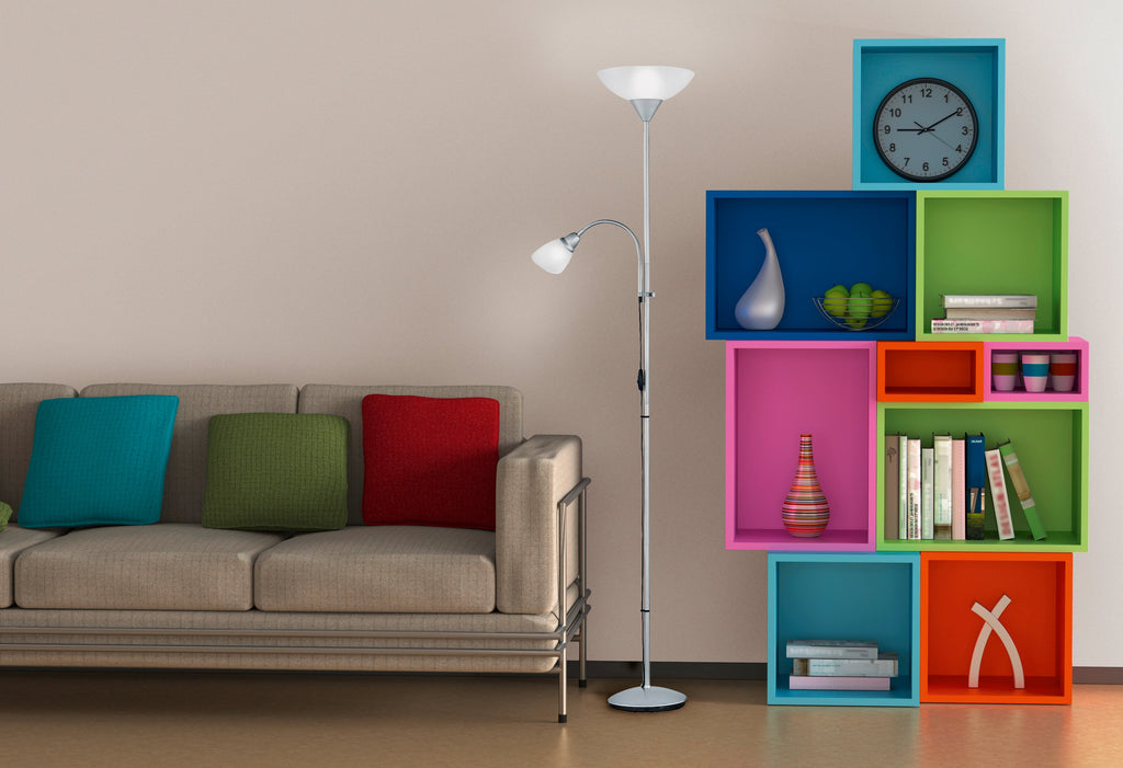 Lampadaire d'intérieur E27 + E14 en Titanium Metal