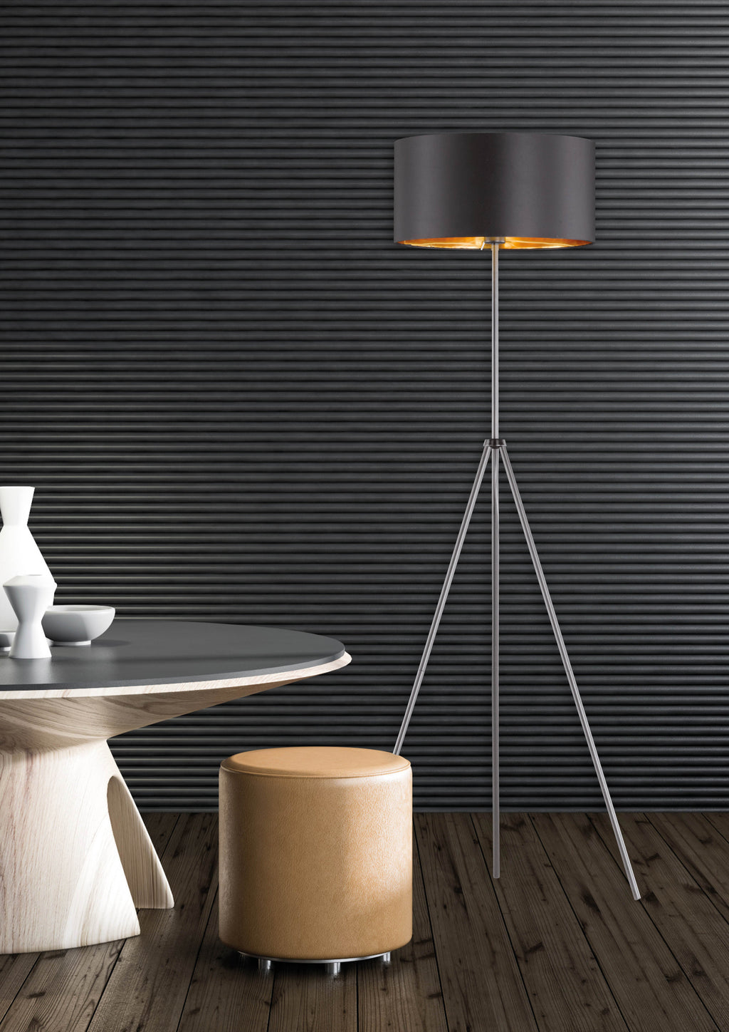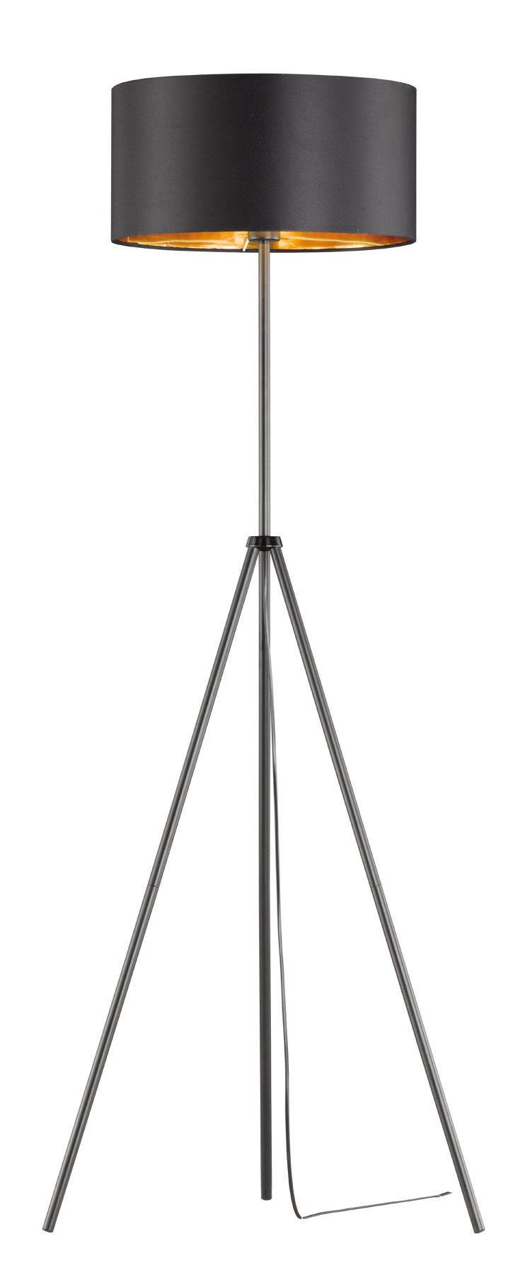 Daniel Lampadaire 3 Pieds Noir Avec Abat-jour Noir Et Doré H.150 D.40