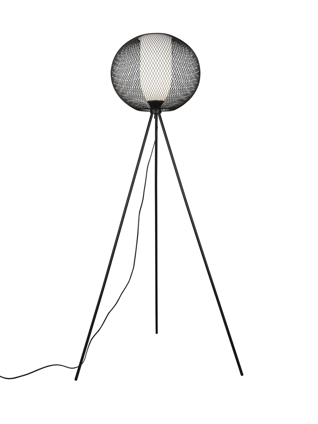 Lampadaire Filo Cage Métallique Noir Avec Verre Blanc H.150Cm