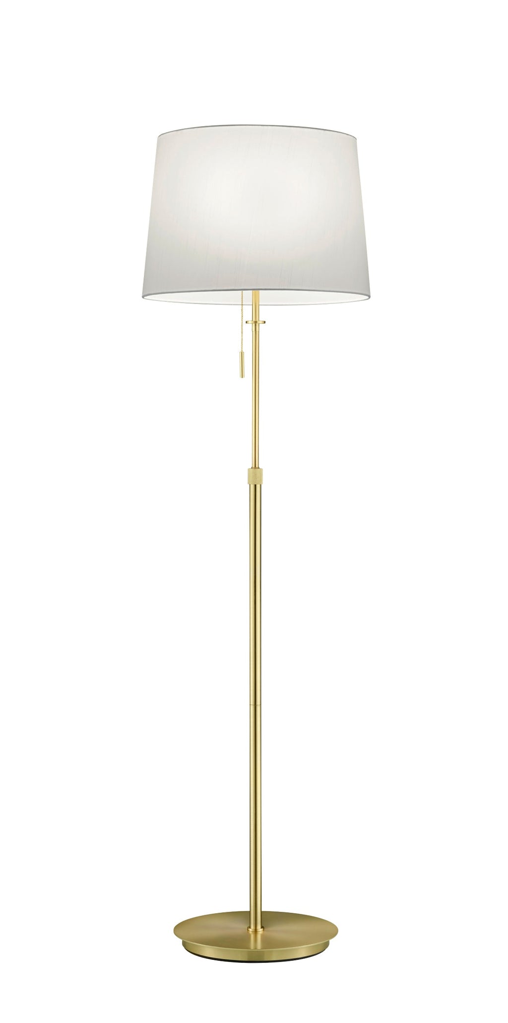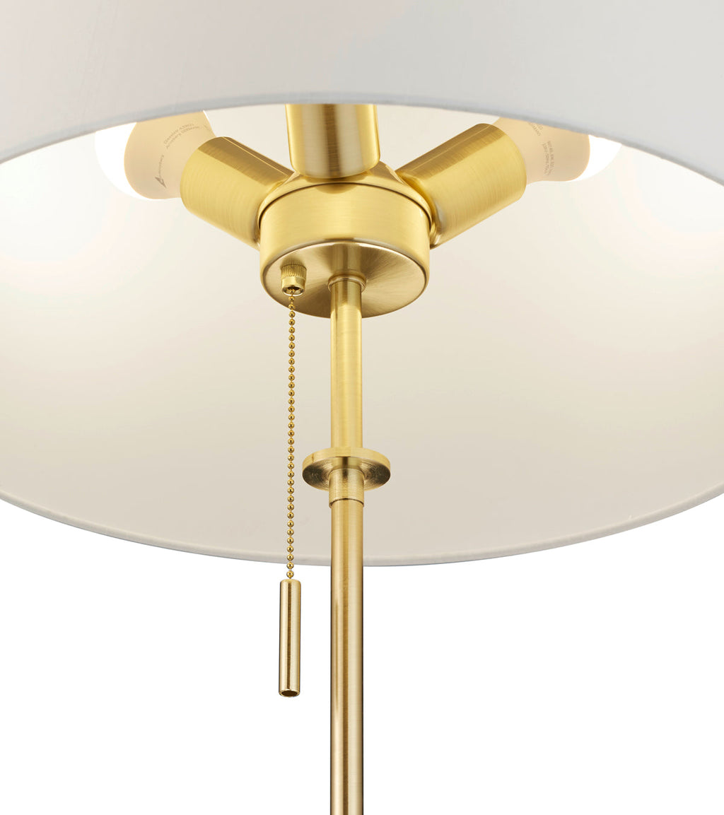 Lampadaire Lyon Laiton Satiné Avec Abat-jour Blanc Réglable En Hauteur Et Avec 3 Ampoules Avec Interrupteur Séparé H. 140-180Cm, D.46,5Cm