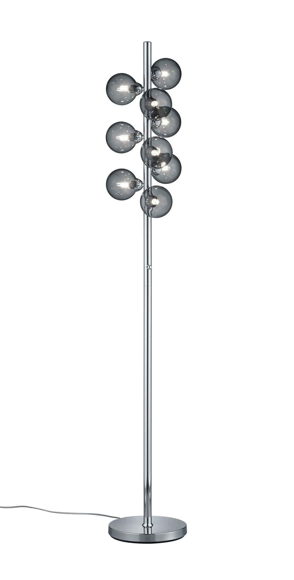 Lampadaire Alicia Chromé Avec 9 Diffuseurs En Verre Fumé H. 155Cm