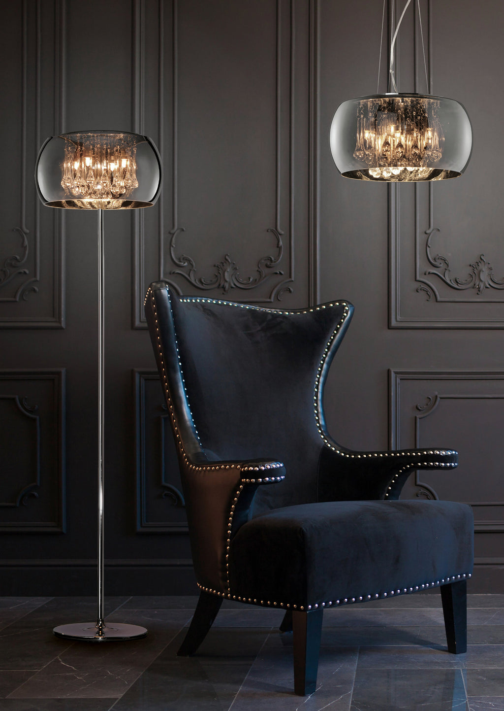 Vapore Lampadaire En Verre Chromé Avec Pampilles En Verre Dimmable D.40Cm X H.160Cm