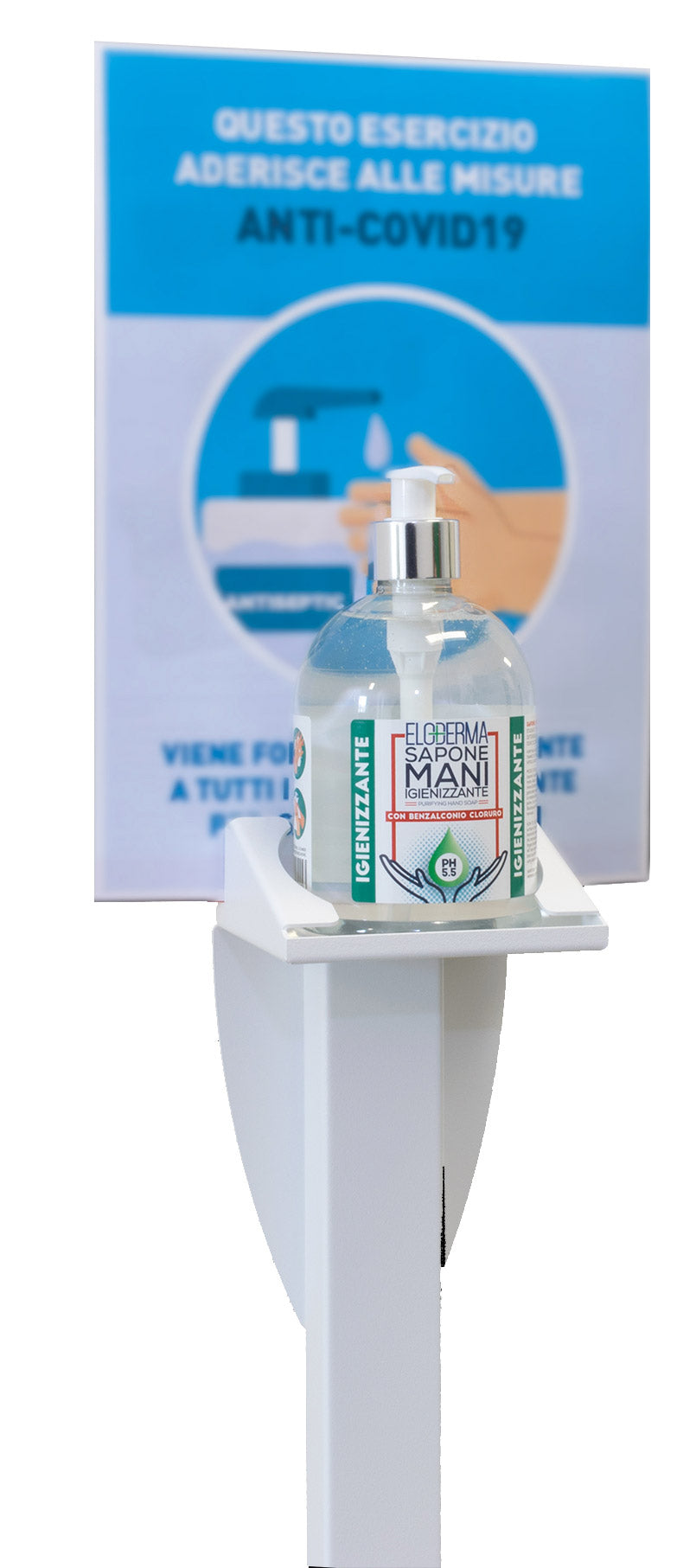 Le support de désinfection manuelle LISA est un produit entièrement fabriqué en Italie. L'absence d'électronique rend le support de désinfection manuelle LISA parfait pour toute utilisation, même à l'extérieur. Convient à tout environnement de travail et lieux à fort trafic, bureaux, entreprises, magasins et activités commerciales.