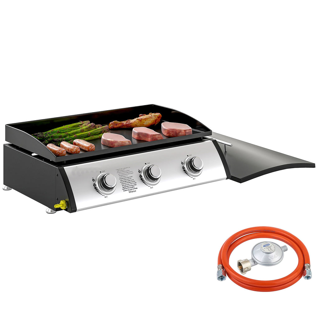 Piastra a Gas con 3 Bruciatori Potenza 7,5kW con Coperchio in Acciaio Smaltato Nero