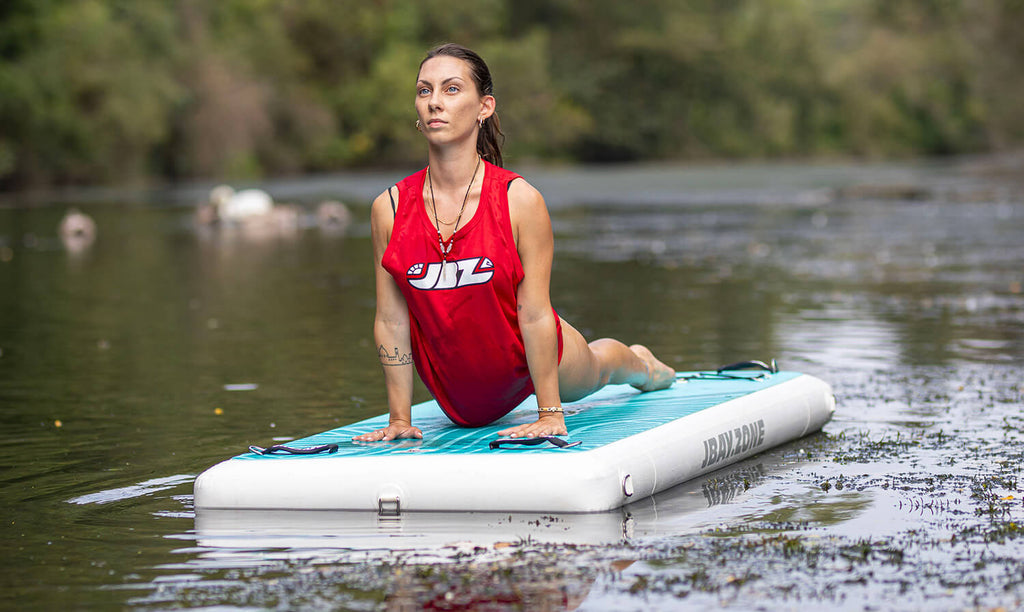 La meilleure façon de s’entraîner sur l’eau a un nom : Jfit. Grâce à un deck spécialement conçu, réaliser des exercices de fitness, de yoga ou de pilates à bord de la plateforme JBAY.ZONE Jfit est plus ludique et efficace. Léger, stable et facile à transporter, le tapis JFIT est conçu pour s'entraîner en contact direct avec la nature et obtenir des résultats toujours meilleurs. Dimensions : 218x91x15cm