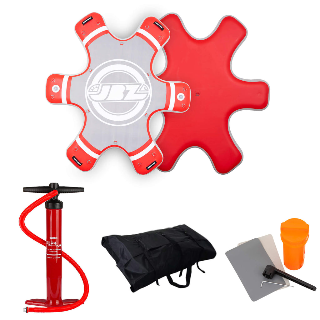 La méditation, l'équilibre, la relaxation et l'entraînement physique et mental s'ils sont pratiqués en contact étroit avec la nature sont plus efficaces et plus satisfaisants. Avec l'îlot Jflow de JBAY.ZONE, grâce à la forme spécifique de la fleur, il est possible de fixer jusqu'à 6 SUP à la plateforme de manière circulaire, facilitant ainsi la réalisation et la coordination des activités de groupe. Pompe et sac de transport inclus.