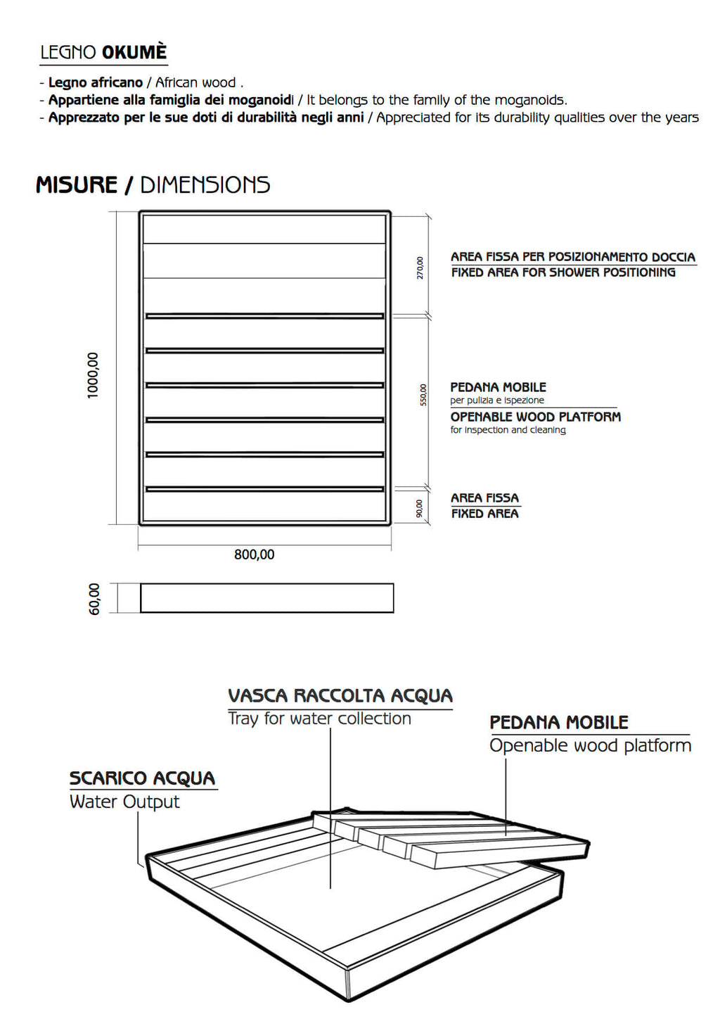 Caratteristiche Tecniche Piatto Doccia Da Esterno Giardino Piscina In Legno di Okumè Arkema