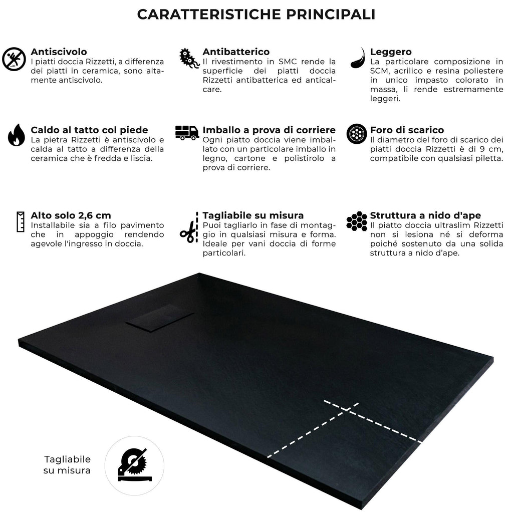 Receveur de Douche Différentes Tailles Effet Pierre Rizzetti Ardoise Noir