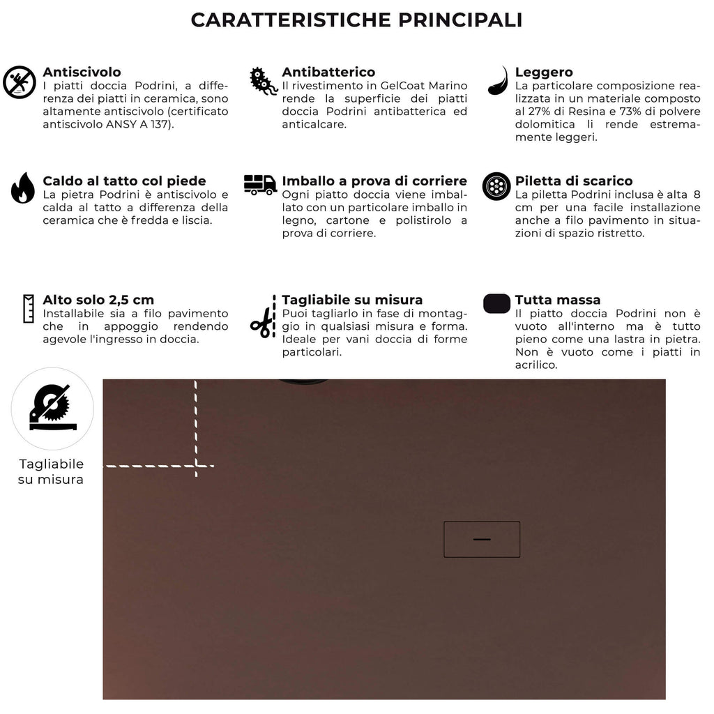 Receveur de douche rectangulaire Bonussi Manila Top en résine marron RAL 8017 différentes tailles