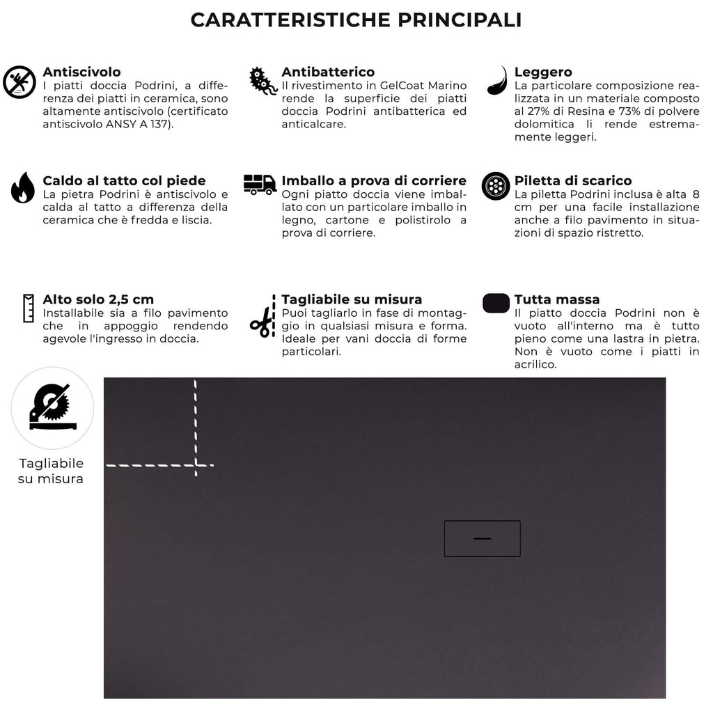 Les receveurs de douche Slate Elegance Bonussi sont solides et peuvent donc être réduits à tout moment sans risque de perte de pente.