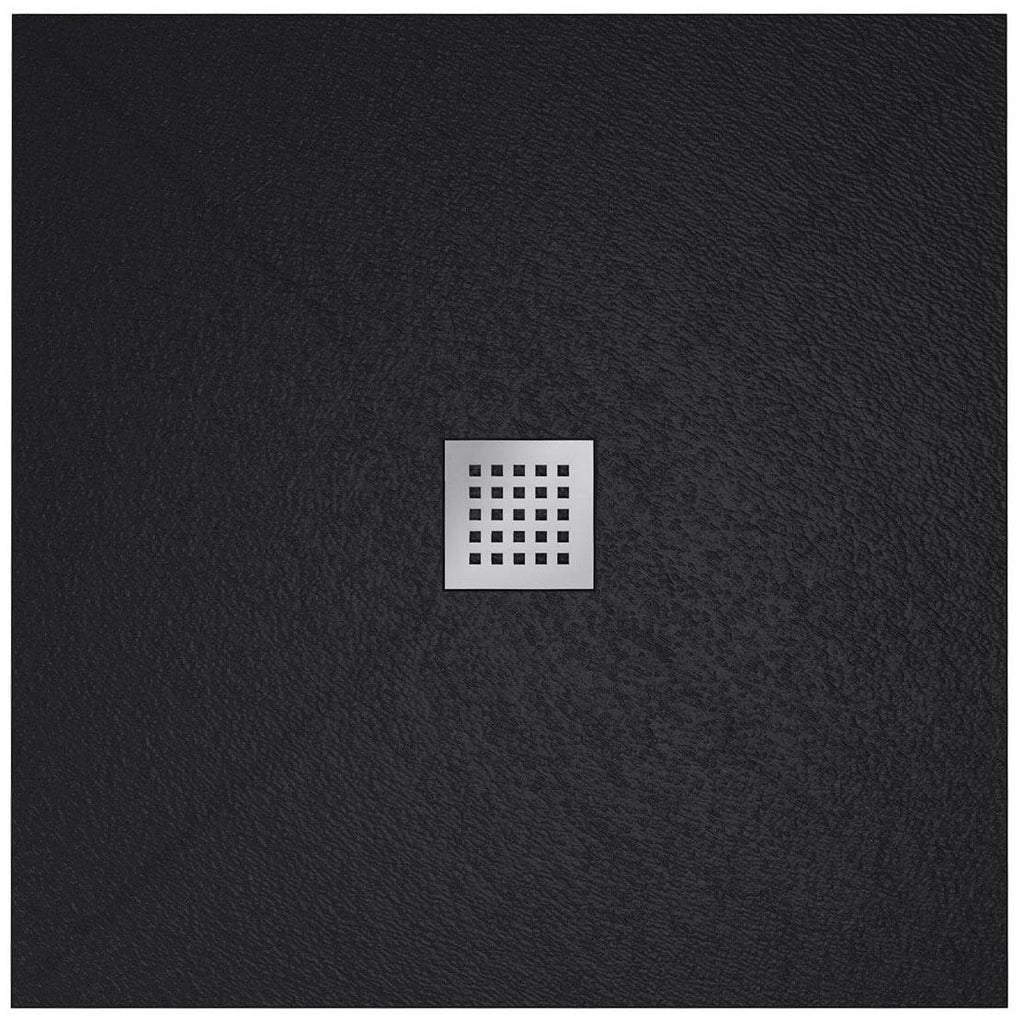 - Receveur de douche 70x70 en résine marbre effet pierre avec cache bonde en inox coloris Anthracite