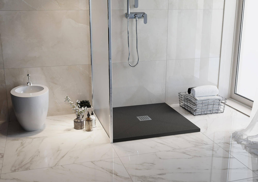 Receveur de Douche en Résine Marbre H3,5 cm Fosterberg Silene 2 Effet Pierre Anthracite