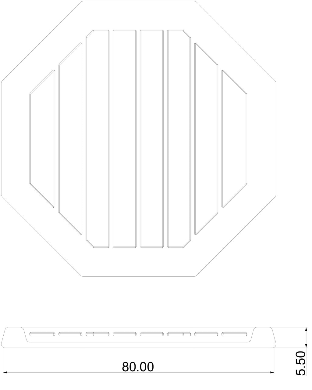 Piatto per Doccia da Esterno Ottagonale con Scarico. L'armonia e l'eleganza delle sue forme la rendono un complemento d'arredo adatto per qualsiasi ambientazione outdoor. Ideale per strutture pubbliche e balneari.