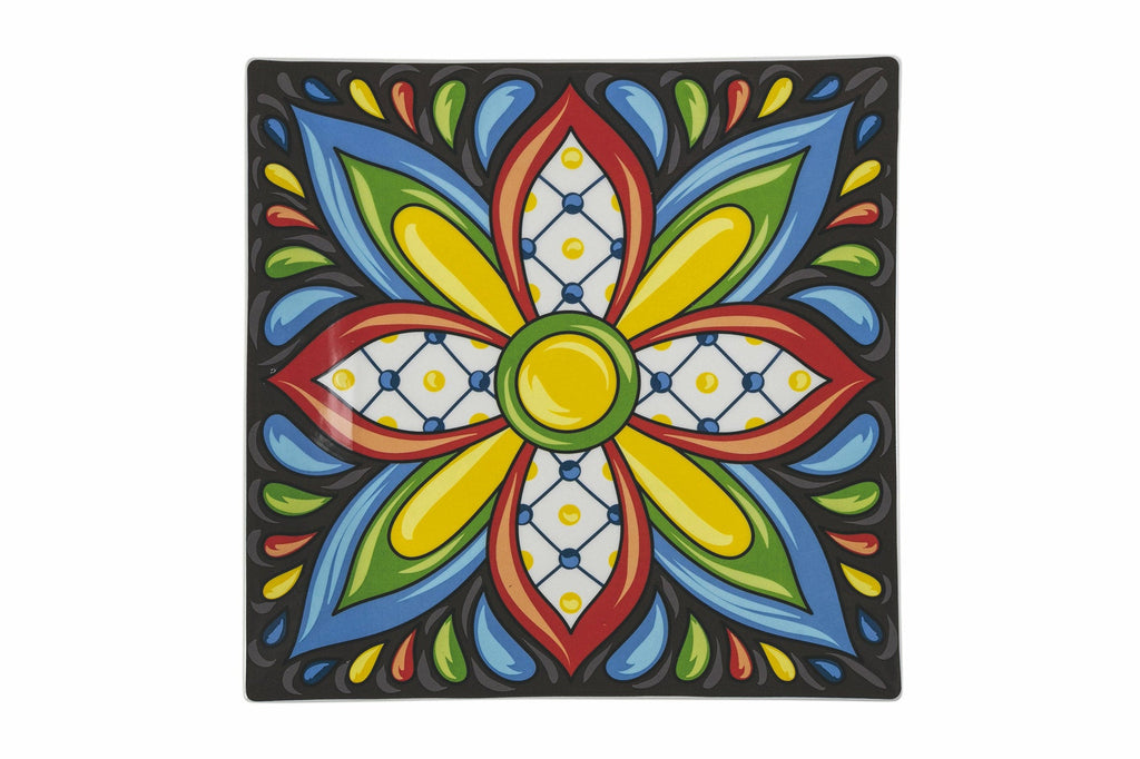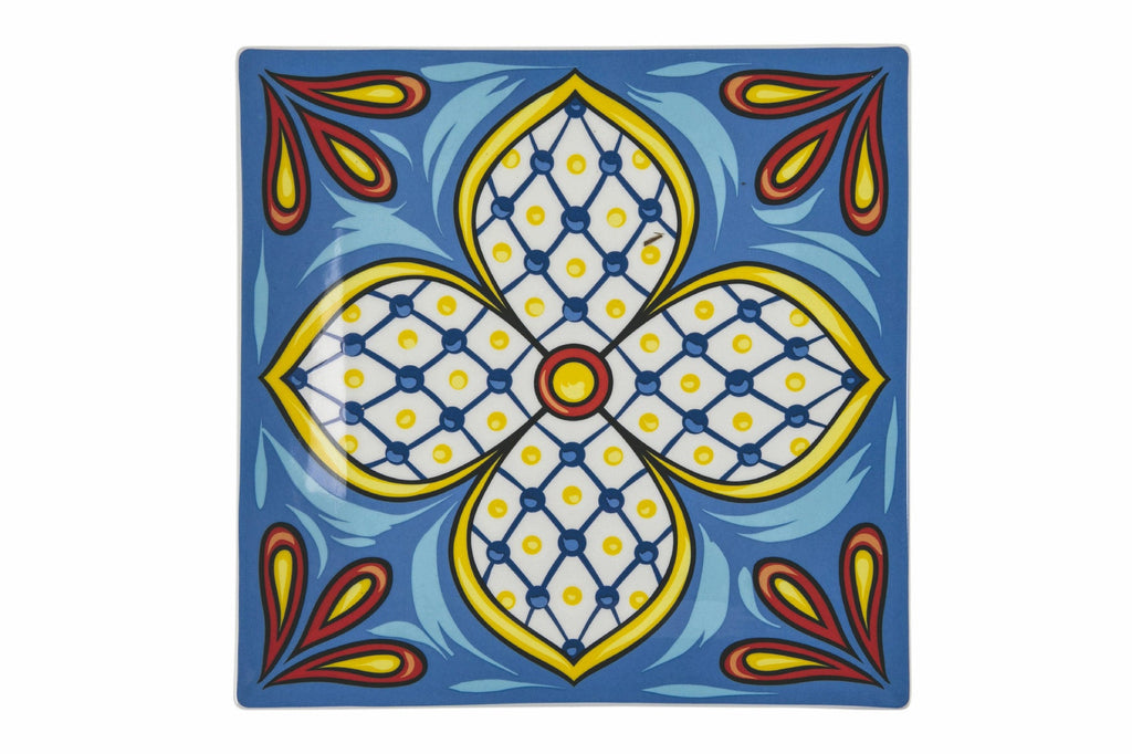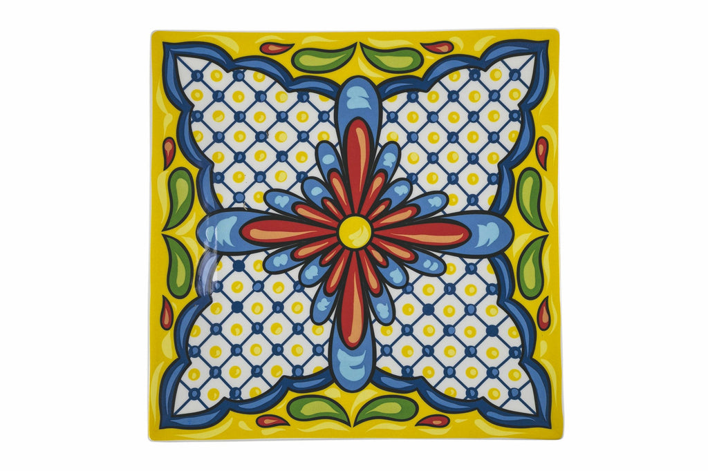 Assiette plate carrée en porcelaine 30 cm Villa d'Este Home Tivoli 1996 Riviera Maya