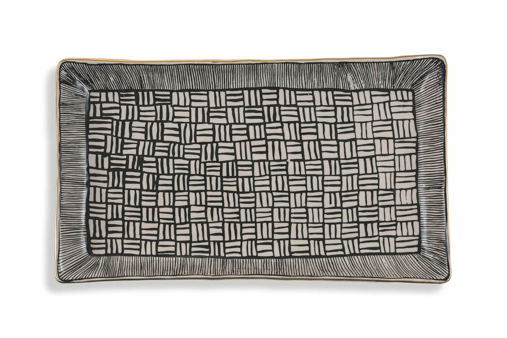 Grande Assiette Rectangulaire en Grès Noir Masai VdE Tivoli 1996