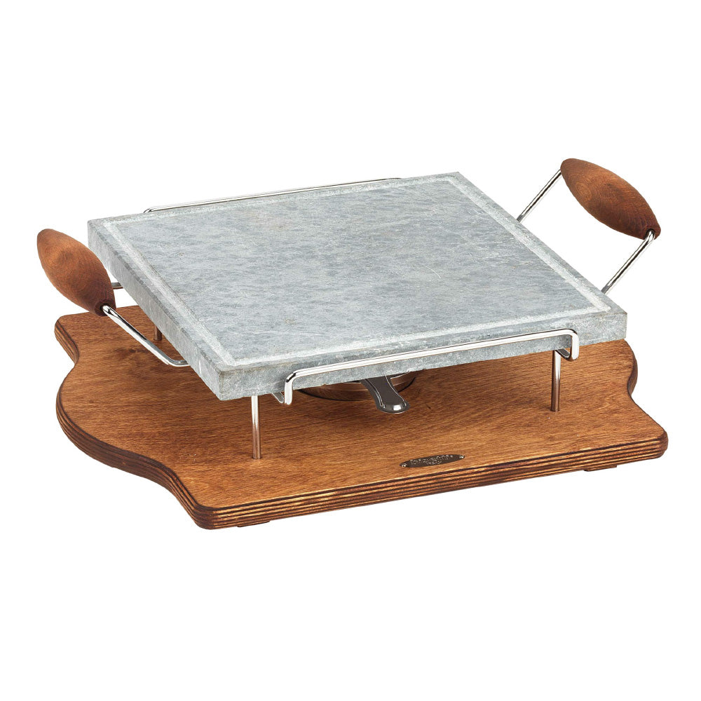 Cuisine saine, sur pierre. Servir avec élégance, sur du bois. Maintenez les plats à la température idéale. Tout cela est possible, grâce aux plaques de stéatite équipées d'un plateau en bois et d'un poêle. Protagonistes de la table, avec leur goût authentique et agréablement rustique.