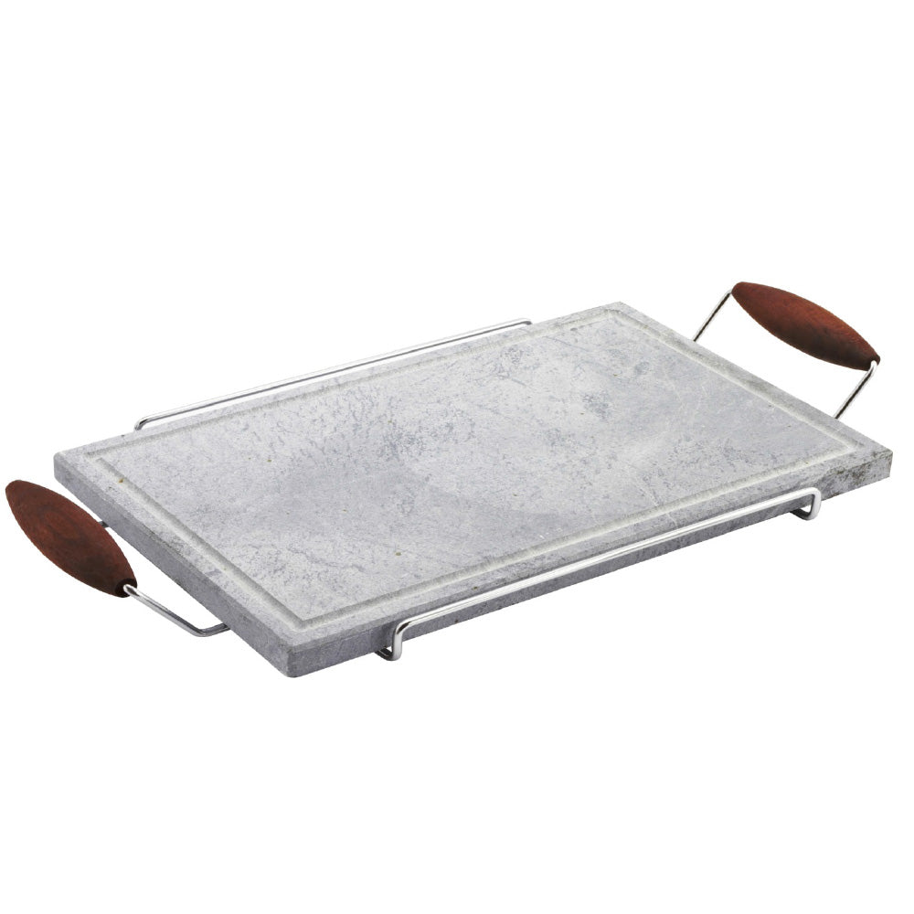 Les assiettes en stéatite avec cadre allient l'authenticité de la cuisson sur pierre à la structure pratique en métal, avec des poignées couleur wengé, pour cuisiner et servir vos plats avec style et facilité. Ils se déclinent en formes rondes, carrées et rectangulaires, dans différents formats, pour s'adapter à toutes les cuisines et à tous les plats.
