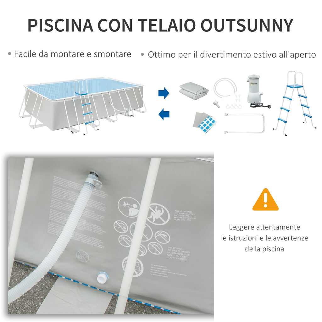 - TELAIO IN ACCIAIO ROBUSTO: La struttura della piscina da esterno è realizzata con solido acciaio. Il rivestimento a polvere previene i danni causati dall'umidità, per garantirne una lunga durata
