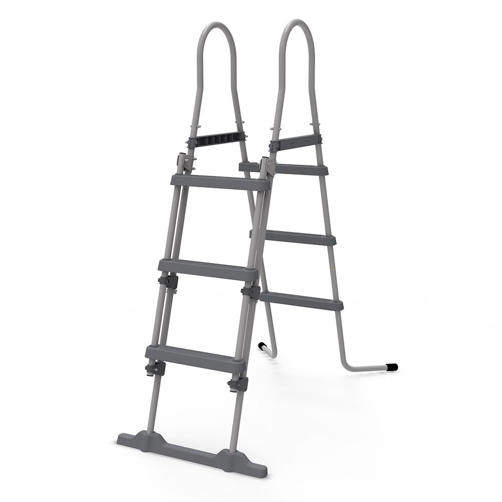 Piscine hors sol ovale grise Jilong avec anneau gonflable soutenu par une structure en acier antirouille et un revêtement en PVC multicouche.
