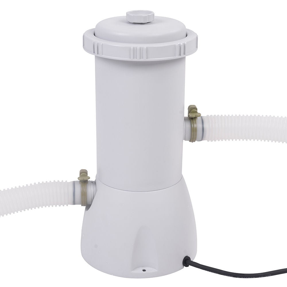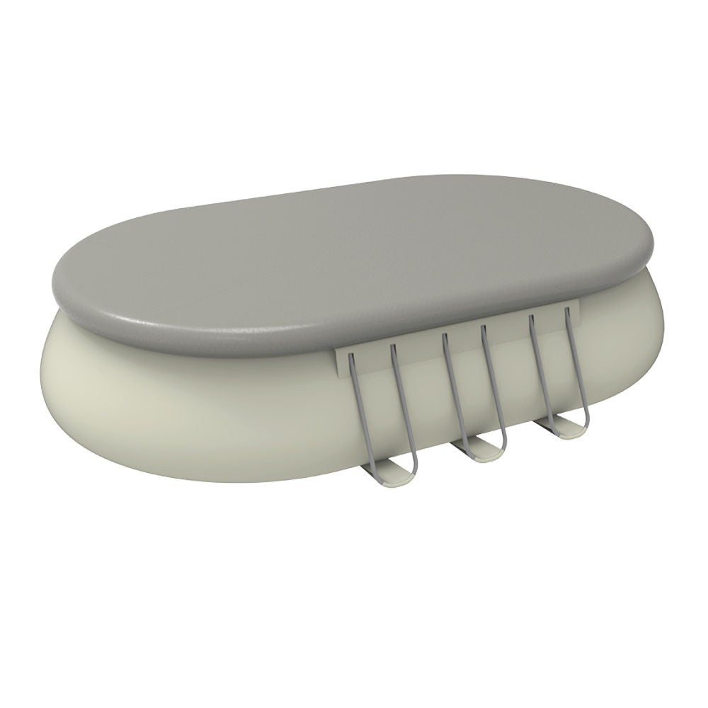 Piscine hors sol ovale grise Jilong avec anneau gonflable soutenu par une structure en acier antirouille et un revêtement en PVC multicouche.
