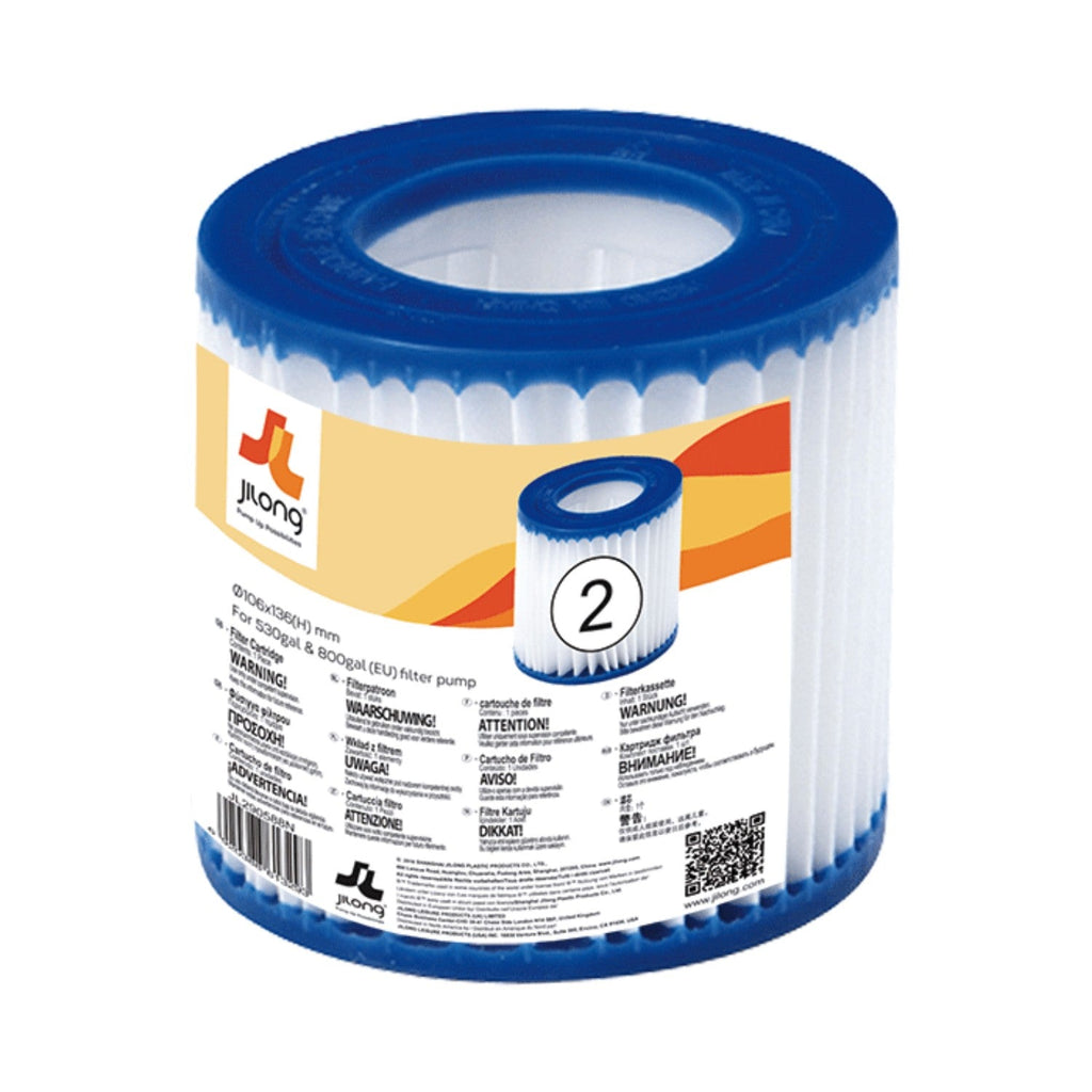 Piscine hors sol ronde bleue Jilong avec structure en acier antirouille et revêtement en PVC multicouche.