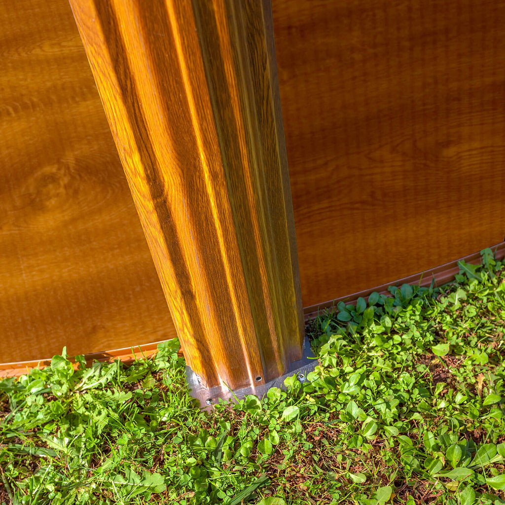 Grâce à son design avec décoration bois, la gamme de piscines Pacific suit les dernières tendances en matière de décoration et de mobilier extérieur. Cette piscine en acier imitation bois peut être facilement installée sans nécessiter de fouilles. Le Kit comprend tout le matériel nécessaire au montage : parois en acier avec traitement Anti-UV, liner, skimmer, filtre à sable et échelle.