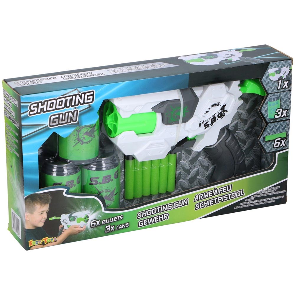 1 x Pistola Giocattolo per Bambini con 6 Colpi Munizioni 3 Barattoli Tiro Bersaglio