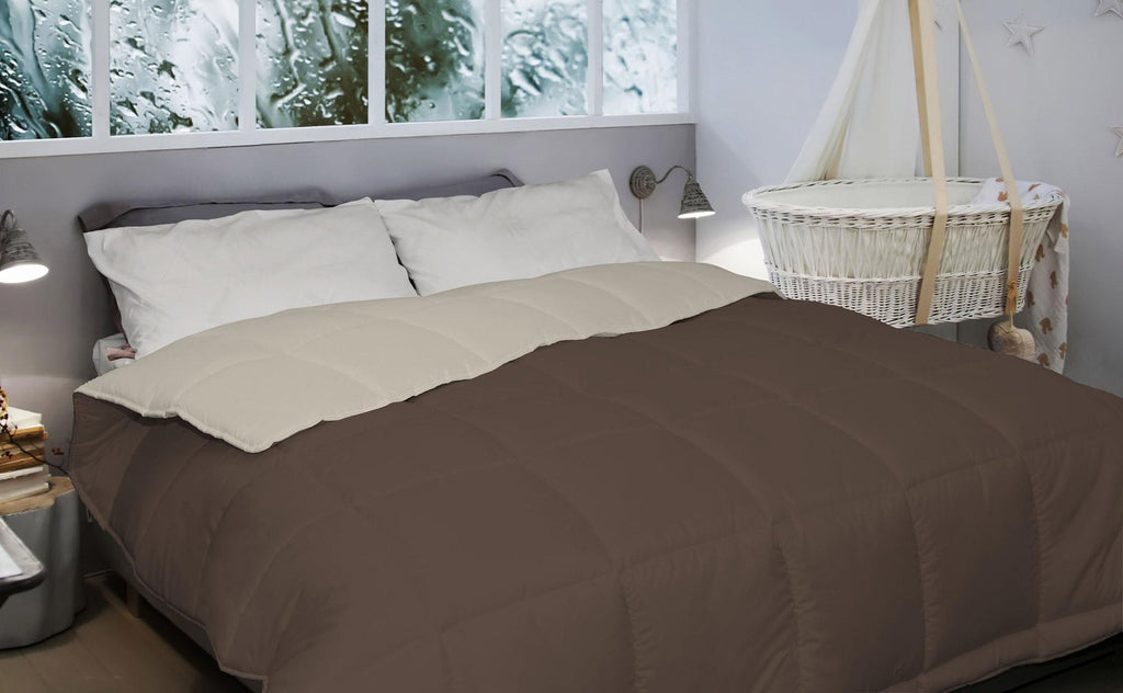 Couette Hiver en Microfibre 300gr Double Face Marron/Crème