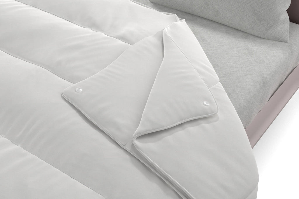 Couette en microfibre douce Made in Italy avec double rembourrage hypoallergénique, un pour l'été et un pour la mi-saison qui forment ensemble une excellente couette pour la saison d'hiver . Une haute technologie une grande sensation de douceur, assurant une très grande respirabilité et une excellente rétention de la chaleur pendant le sommeil.