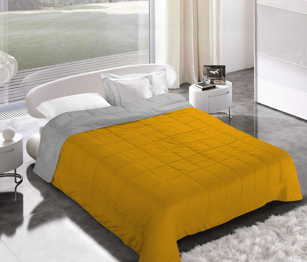 Couette d'été en Microfibre 120gr Double Face Ocre/Gris Clair